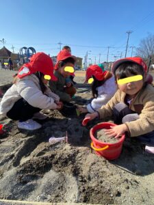 一緒に砂場遊びを楽しみましたよ♪