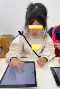 それから、らいおん組さんになると始まるプログラミングの体験に参加してきました。