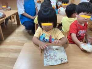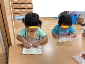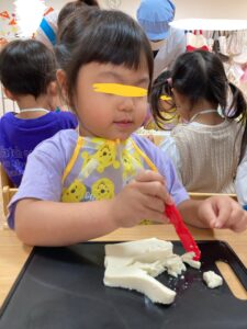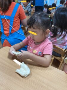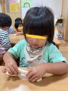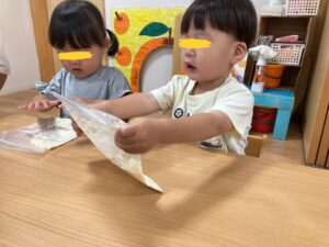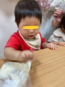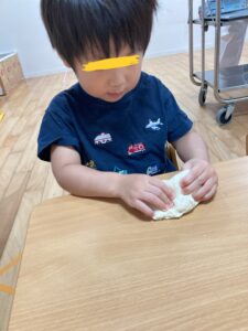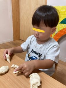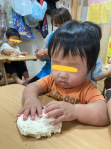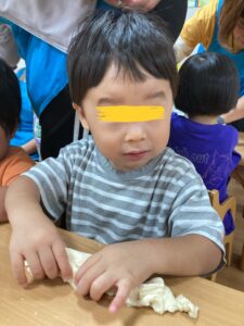 その後は実際に小麦粉粘土に触って、遊んでみました🎵