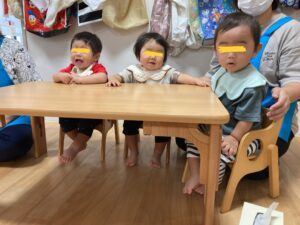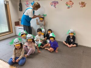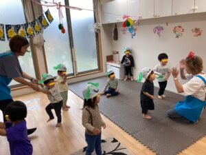 まずは季節の歌”おおきなくりのきのしたで”を歌いました♪