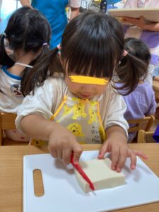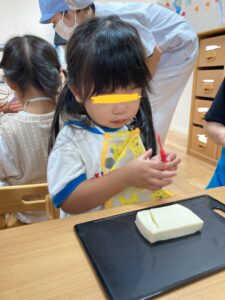 次にお団子の材料(お豆腐、白玉粉)の紹介。