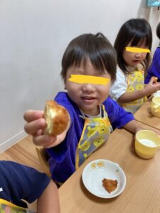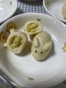 今日のおやつはお月見にちなんでうさぎさんのお饅頭🐰
