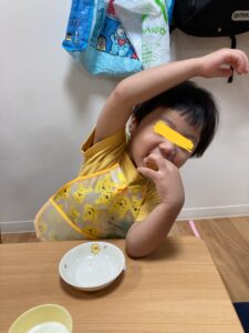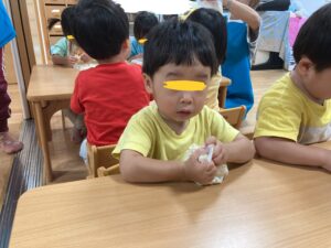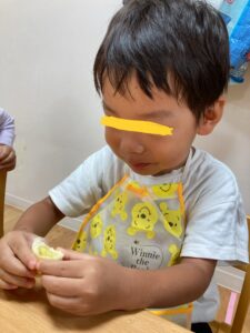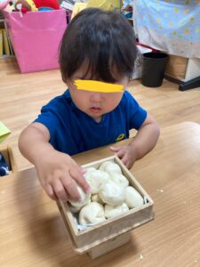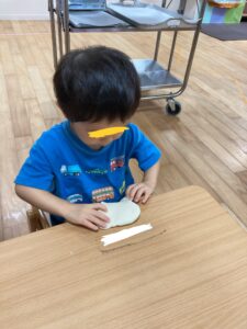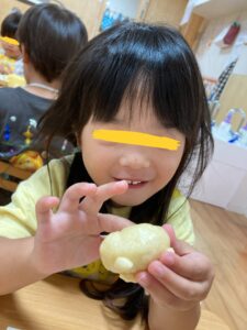 10月6日(月)のお月見に向けて、りす・うさぎ・ぞう組のみんなでお月見団子を小麦粉粘土で作りました🎑