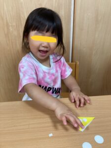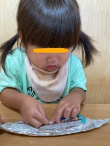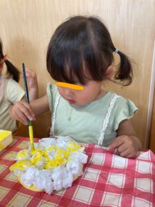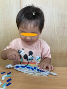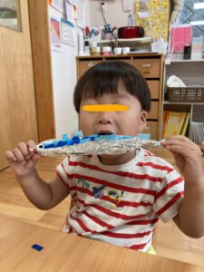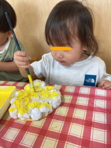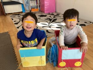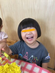 出来上がった作品を子どもたちに見せると「わーー!!きれい!」「かわいく出来たね!」と大喜びでした☺️