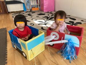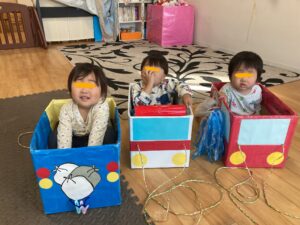 「消防車が電車にかわってる!」と元気に教えてくれました!