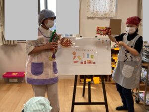 剥けたさつまいもは給食の先生に蒸してもらい、待っている間にクイズ!