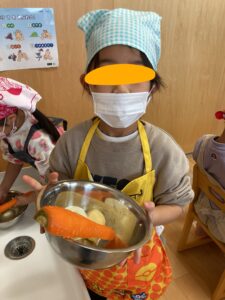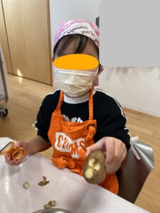今日のさつまいもは 紅あずまといってツルツルしていて、剥きやすいさつまいもを用意したんだよ!と説明してくれました!