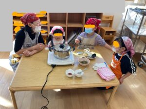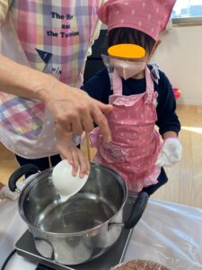 早くおやつで食べたいな〜と楽しみにしている子どもたち☺️