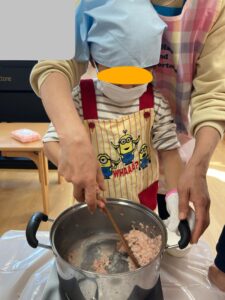 一緒に食べたぱんだ組、らいおん組から「おいしい!」「作ってくれてありがとう!」と言ってもらえてとても嬉しそうでした😊✨