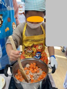お野菜も入れたら焦げないようにしっかり混ぜていきます!