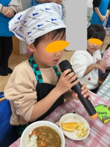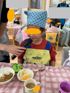みんなでいただきますをする前に、カレー作りで頑張ったことをインタビューしました!