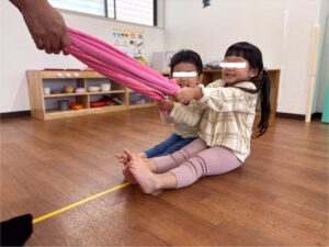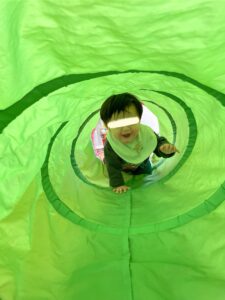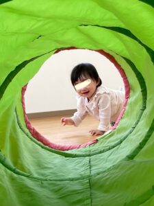 りす組のお友だちは、トンネルをハイハイしてたくさん体を動かします。