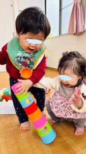 カップのタワーも協力して作っていましたよ👏