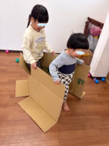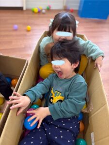 箱の中にお友だちと一緒に入って、船や電車ごっこ🚢