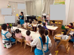 わくわく保育園並木町園でも、由来のマグネットシアターを見てから、七五三の飴袋の製作をしました❣️