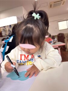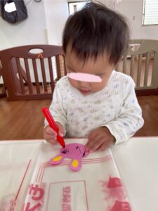 うさぎ組・ぞう組はカラーペンを使ってお顔を描きました。