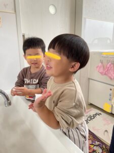 戸外から帰った時には、手洗いのお歌を口ずさみながら、手洗いもバッチリでした✨