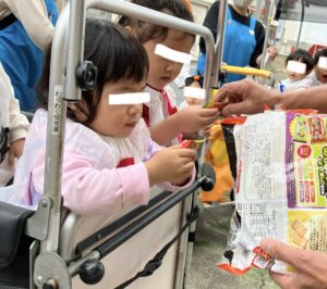 おじいさんや、おばあさんから一人ひとりお煎餅をもらい、
