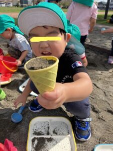 公園ではアイスクリーム屋さんになって色々味のアイスを作ったよ!