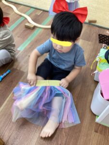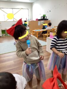 変身ごっこではミニーのカチューシャやふわふわスカートをつけておしゃれを楽しむ姿も♡マイクを持ってアイドルの様に歌う姿も可愛かったです😊