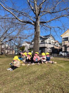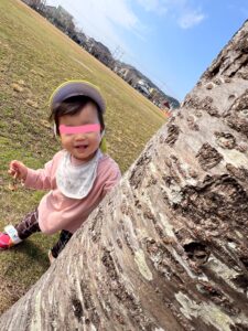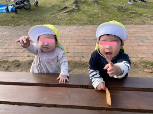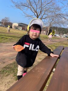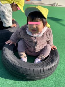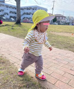 今までは散歩車に乗って園の周りをぐるぐると景色を楽しんで帰ってきましたが、靴を履くことで行動範囲が広がり公園でも体を動かして遊ぶことができるようになりました😊