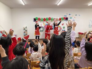 「サンタさんくるかな?」「楽しみだね!」とウキウキワクワクな子どもたち。