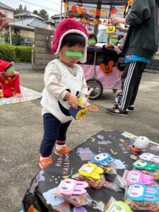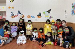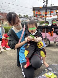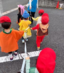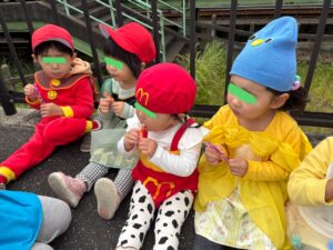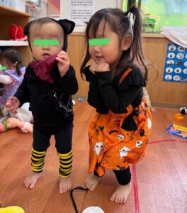 朝から仮装をしているお友だちを見て
