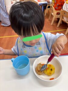 園に帰ってきてからは大好きな給食です🍴