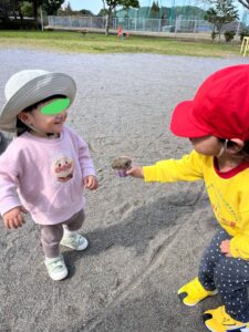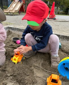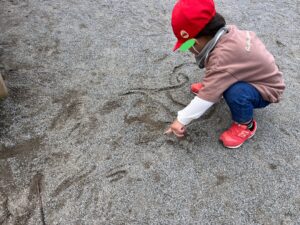 砂にかいじゅうのお絵描きをしていたお友達もいましたよ。