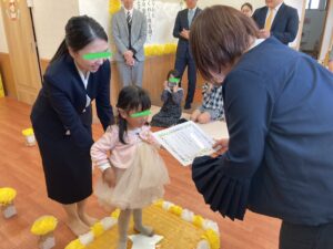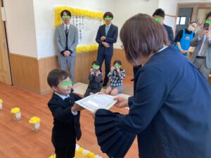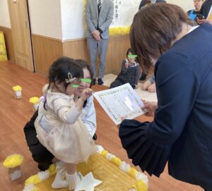 園長先生から証書をもらう姿はとても立派でした。