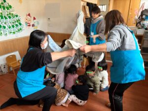 毎月避難訓練を行なっているので、みんな集まるのが上手です。