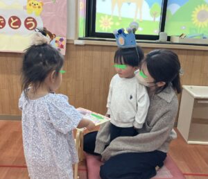 わくわく保育園の歌や三つの魔法の言葉を唱えた後に