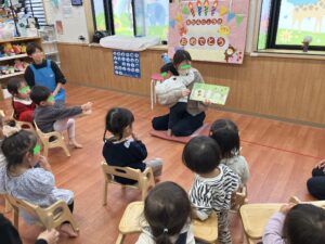 保育園に帰り、給食前には楽しい絵本を
