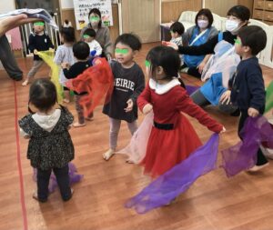最後はみんなでオーガンジーを使って楽しく