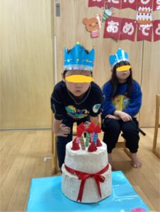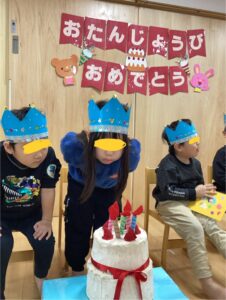 10月の誕生日会でお休みだったお友だちも加わり、6人のお友だちのお祝いをしました。