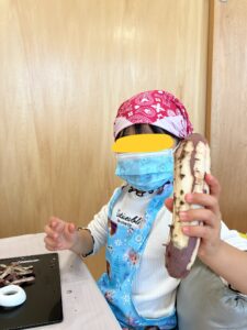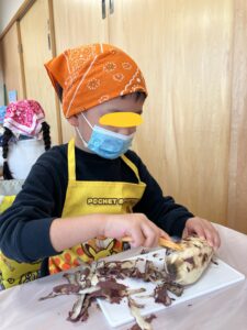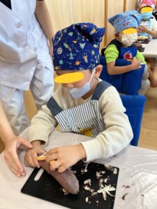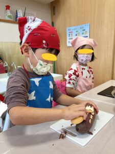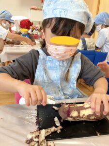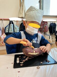 今日のさつまいもは 紅あずまといってツルツルしていて、剥きやすいさつまいもを用意したんだよ!と説明してくれました!