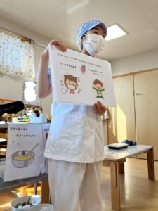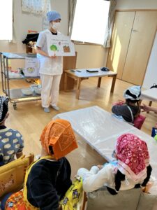 剥けたさつまいもは給食の先生に蒸してもらい、待っている間にクイズ!