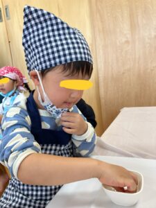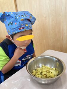 早くおやつで食べたいな〜と楽しみにしている子どもたち☺️
