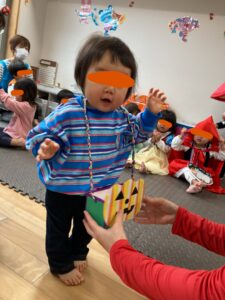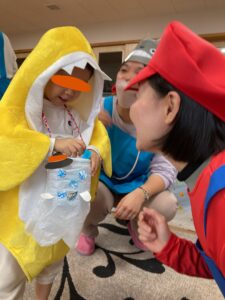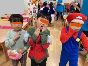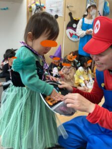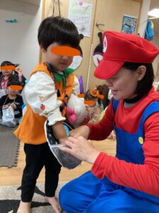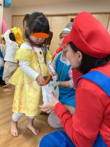 保育園ではマリオに変身した園長先生からお菓子をもらいました!🍬