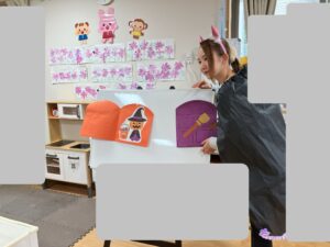 「ハロウィンはおばけの世界とみんなの世界が繋がっちゃう日だから、みんなもおばけに驚かされないように変身しよう!」