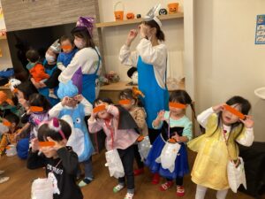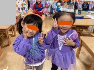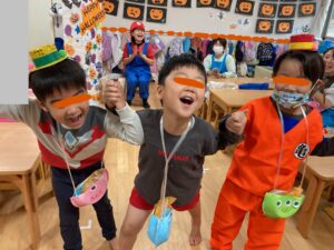 お友達と一緒にばっちり決めポーズをして、お菓子をもらうことができました🍭