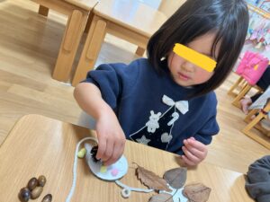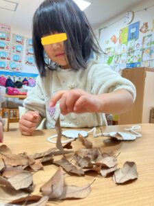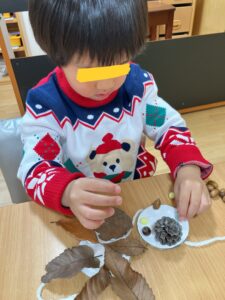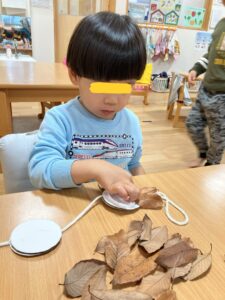 落ち葉と同じようにじっくり選ぶ子どもたち👀