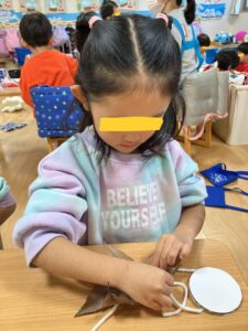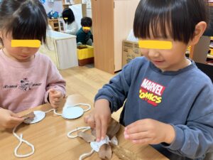 仕上げは保育者が行い、シルバースプレーをかけたり、