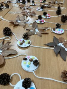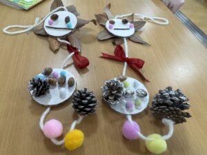 お次は、まつぼっくり、どんぐり、デコレーションボールを