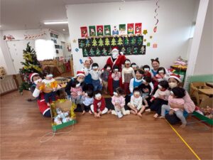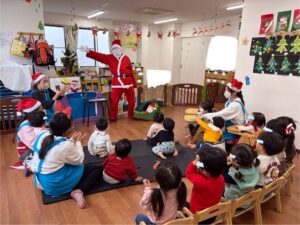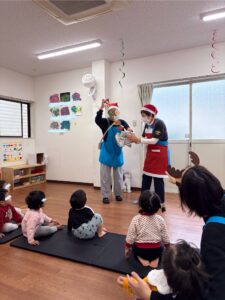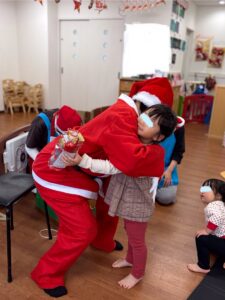 サンタさんのパペットと触れ合ったり、プレゼントを心待ちにしているお友だちもいます😊