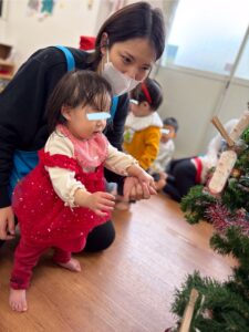保育室に、クリスマスツリーやオーナメントを飾って、保育園もすっかりクリスマスモード✨