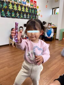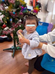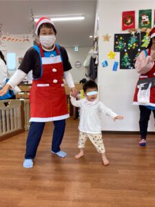 体操では『サンタさんとトナカイくん♪』『クリスマスの歌が聞こえてくるよ』をみんなで踊りましたよ。