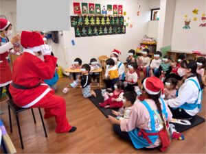 これまでクリスマスの絵本を見たり、歌を歌ったりしながらクリスマス会を楽しみにしていた子ども達💕