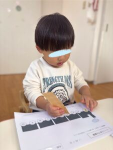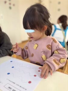 今回は運筆(波線)・1〜10までの数の認識に挑戦しました❣️