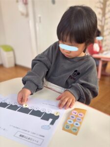 機関車とシール、交互に見ながら1〜10まで完璧に貼ることができました❤️